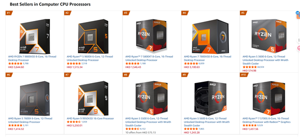 AM4处置器更是占领了4席,除了排名第3的锐龙7 5800XT,还有锐龙5 3600、5500 及5600这些极具性价比的型号。