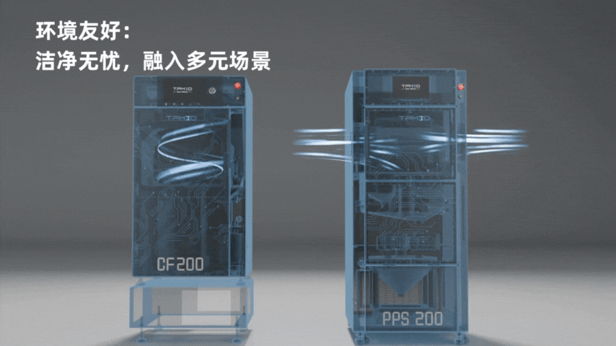正在空间操纵方面,该系统实现显著冲破:从机占地面积仅0。48㎡,整套设备总占地不跨越1㎡,完满适配办公取研发;同时采用平易近用220V尺度电源,即插即用,大幅降低了SLS手艺的使用门槛。该系统正在敌对性方面取得主要进展。CF200从机内置新风除味系统,无效节制打印过程中发生的气息;PPS200后处置坐采用负压清粉手艺取管道输送设想,最大限度削减粉尘污染。这一设想使系统可以或许恬静、干净地融入办公室、学校、设想工做室等多种,打破了保守工业级设备对利用的苛刻要求。